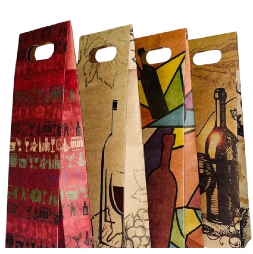 Ideal para você que busca uma sacola para presentear alguém especial com uma garrafa de vinho, whisky, vodca, destilados num geral Papel grosso e reforçado, ideal para resistir ao peso da garrafa utilizada!